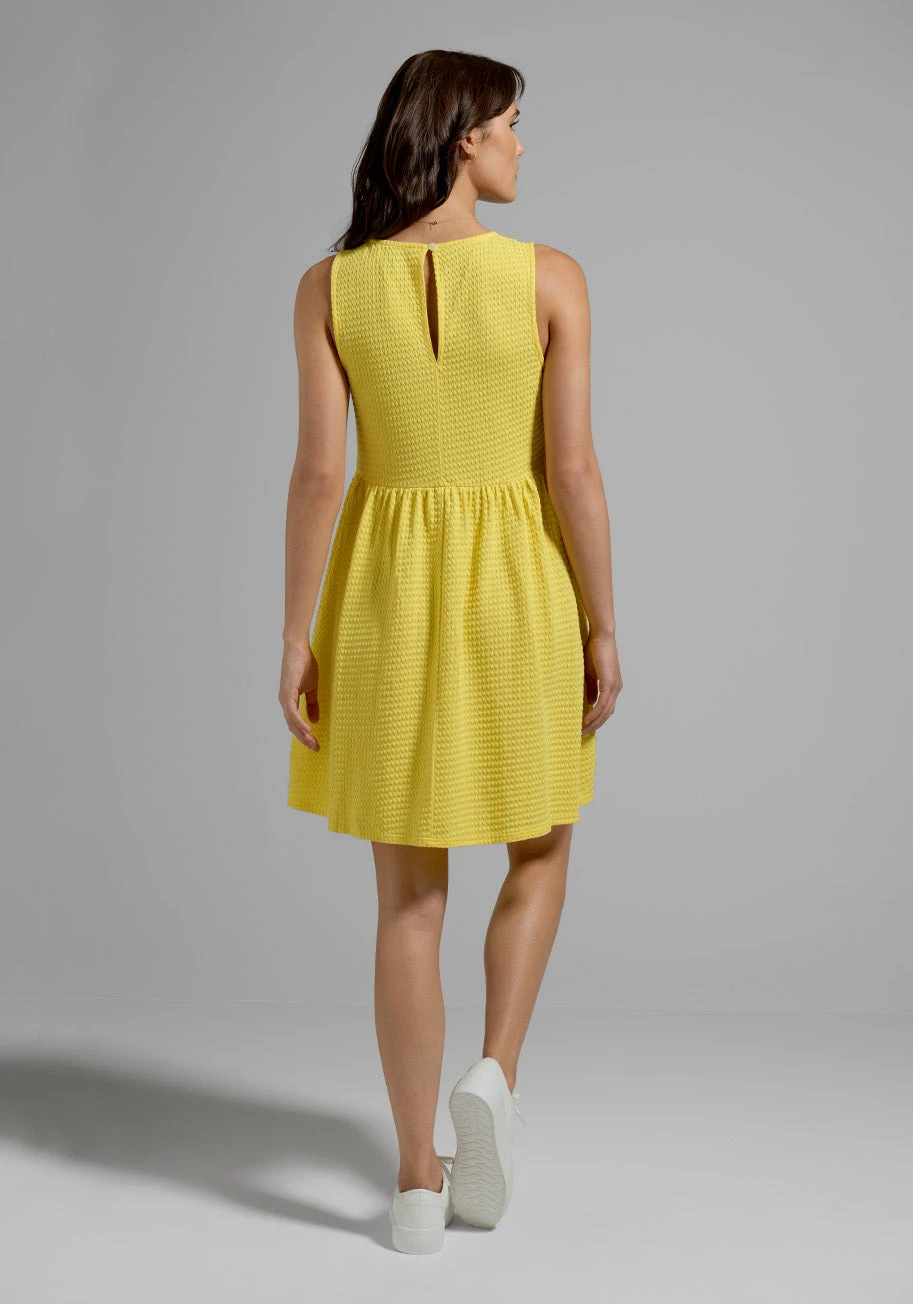 Just in time for fun in the sun, this sleeveless babydoll dress from our ModCloth namesake label is so much fun to style! Made from a textured knit fabric in a vibrant yellow hue, this 50s-inspired babydoll dress boasts deep front pockets, a scoop neckline with keyhole and button-loop closure at the back, and a stretchy, breathable cotton-blend construction.
