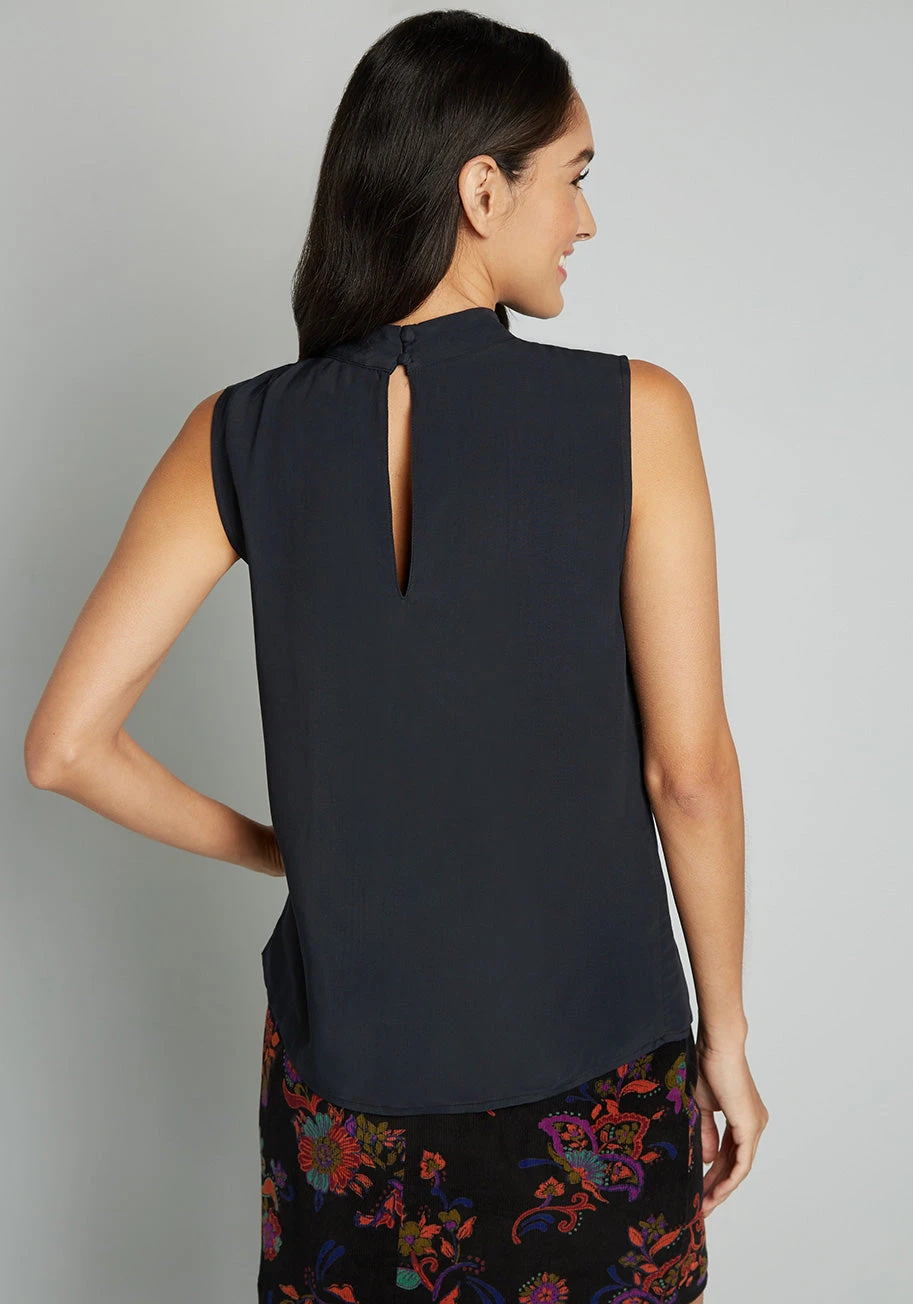 Add some intrigue to your look with this black ModCloth namesake label blouse. Made from a lightweight woven fabric, this flowy top has a vintage-inspired mock neckline that is elevated with keyhole detailing at front and back.