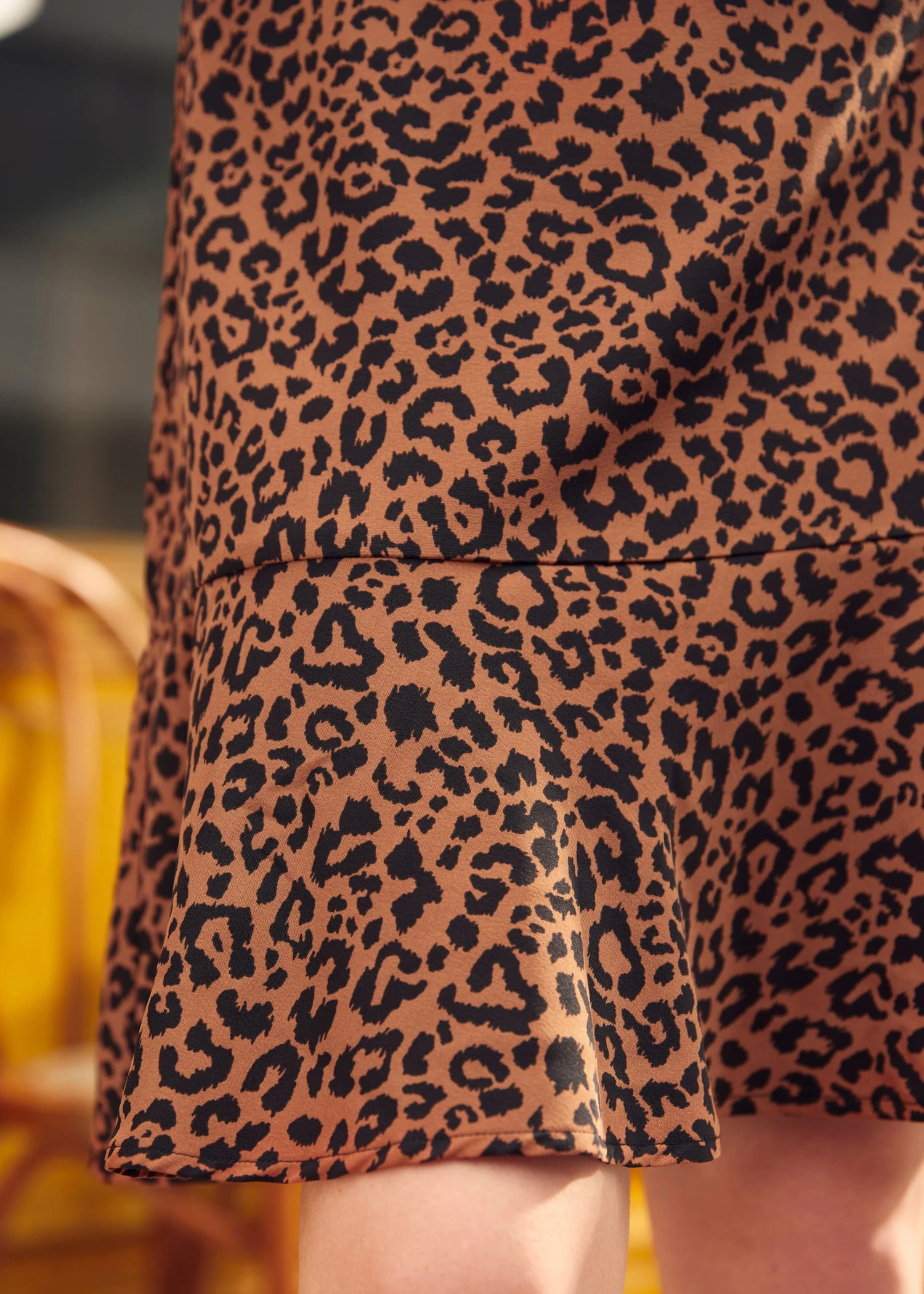 Shake up your autumn wardrobe with the Ruffle Some Feathers Hem Skirt from our ModCloth namesake label. Its wild streak leopard print and ruffle hem bring an edge to the traditional woven skirt, completed with a convenient zipper closure. Pair it with boots for a fierce fall look.