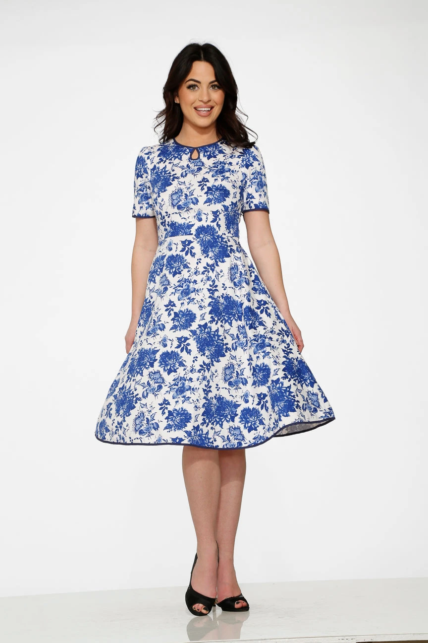 Graceful and timeless, the White & Blue China doll Swing Dress by Orchid Bloom features a delicate blue-on-white print inspired by classic porcelain motifs. With its flattering swing silhouette and vintage charm, it’s perfect for afternoon teas, garden parties, or adding a refined touch to your everyday look.
